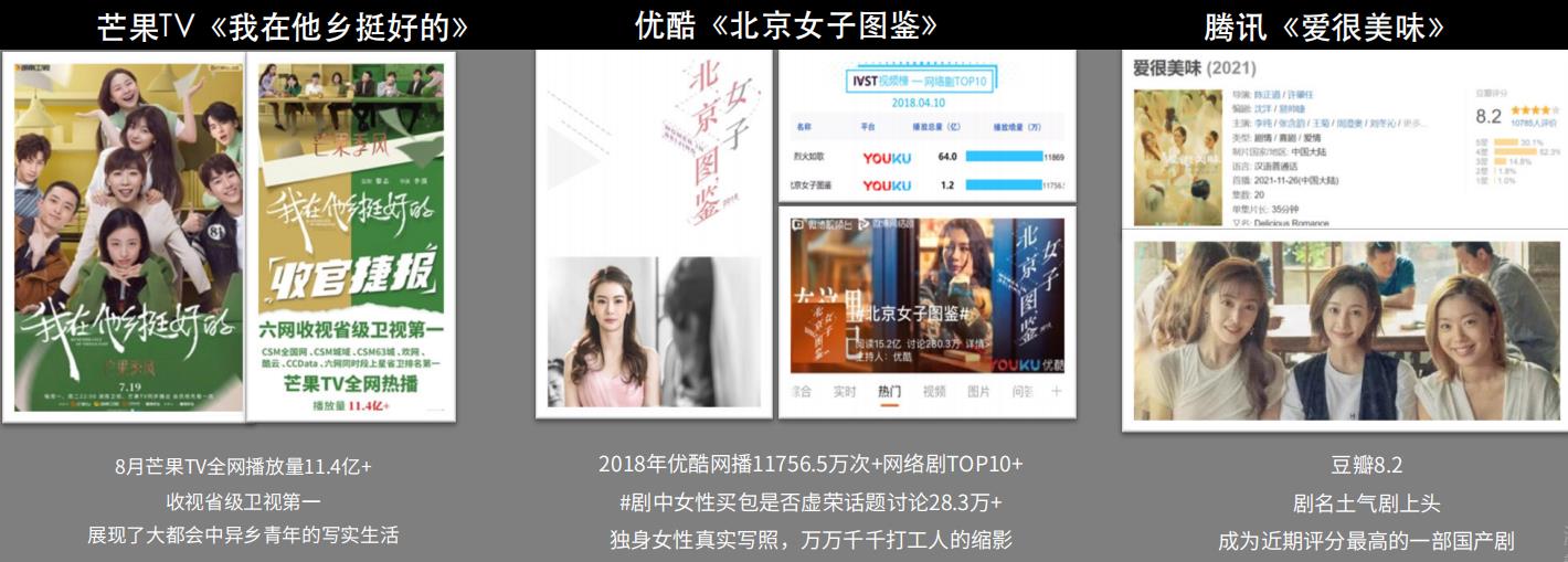 以三类不同生活状态及感情状态的女性群体视角展开,聚焦女性职场和情感生活, 20-40岁女性观众是主要受众;