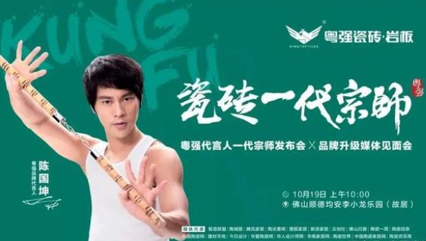 10月19日,在粤强一代宗师代言人发布会暨品牌升级媒体见面会上,粤强瓷砖正式官宣李小龙的扮演者——香港武术明星陈国坤为品牌代言人。