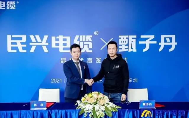 民兴电缆携手国际巨星甄子丹在深圳举行品牌代言签约仪式,甄子丹正式成为民兴电缆品牌代言人。